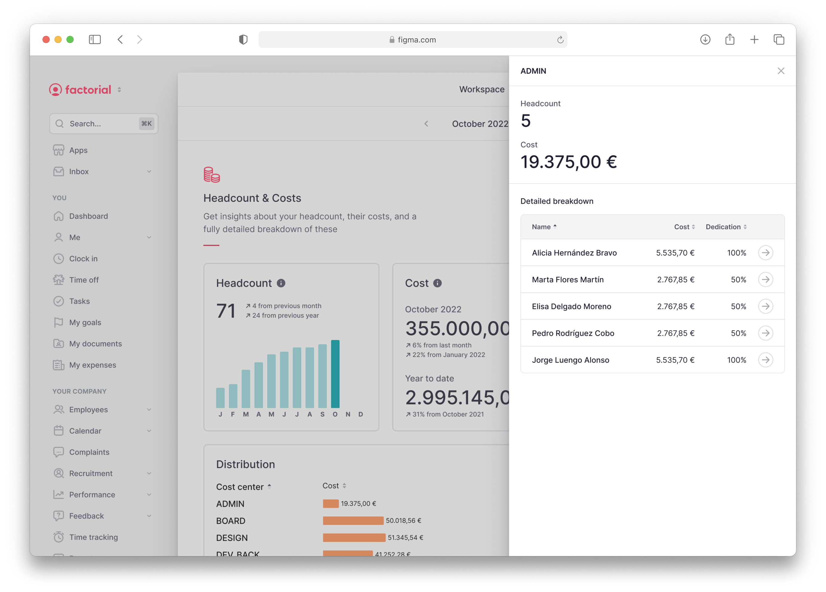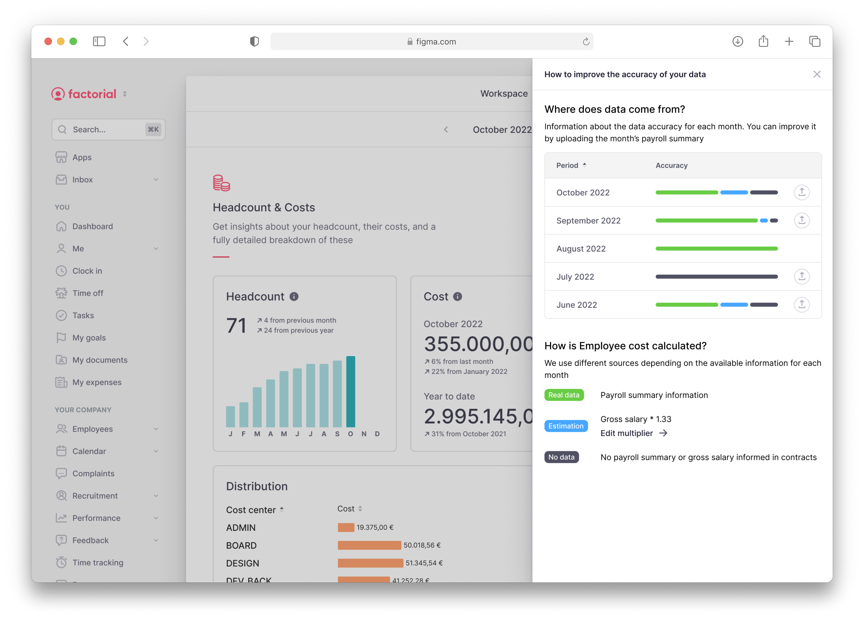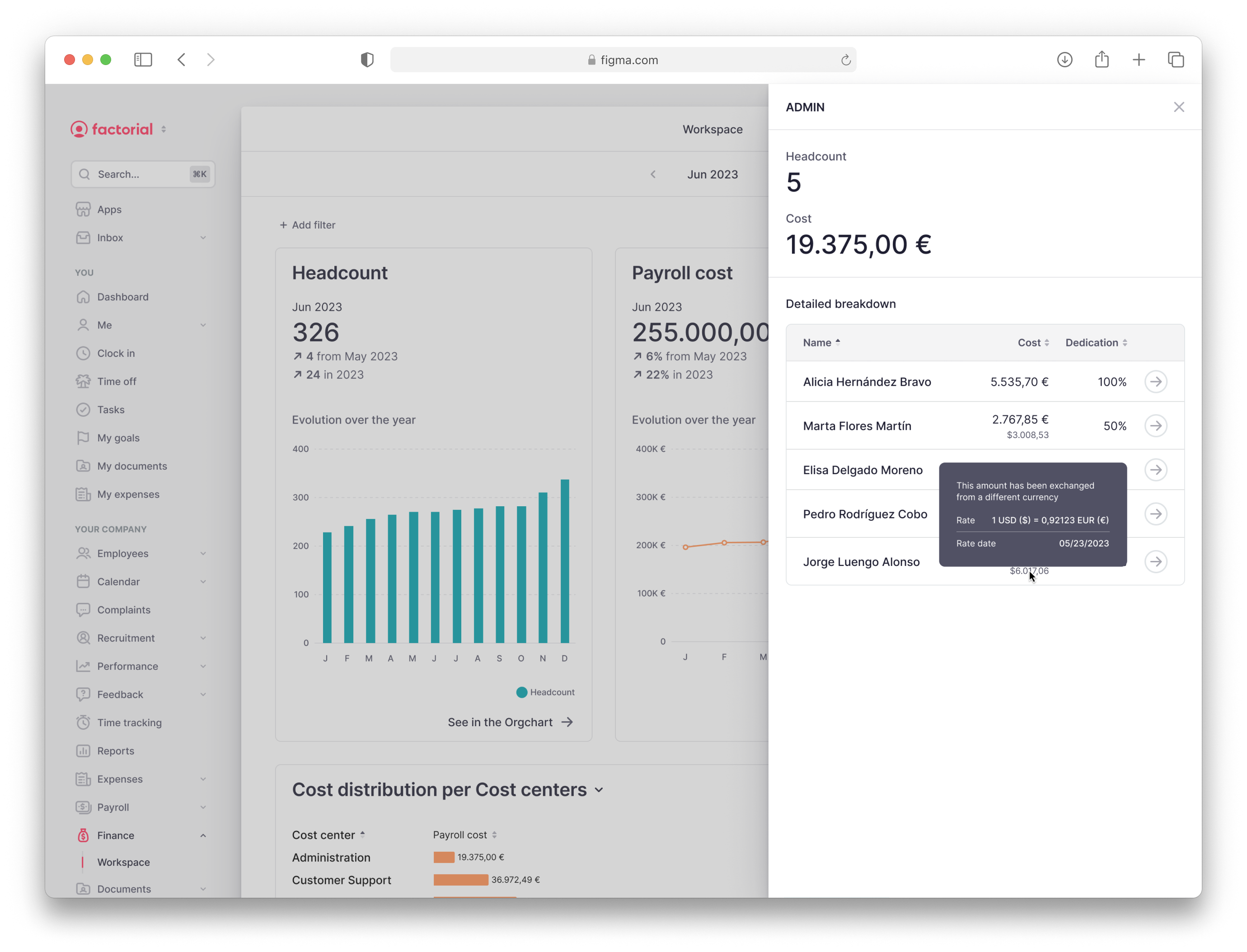 After we launched the first version, many companies told us that company cost was the most valuable item to have in the workspace but they needed more detail about payroll concepts to fully analyze the company costs. That is, to break the company cost into some important items like IRPF, taxes, benefits, etc. These concepts are detailed in the payroll summary file that they provided for us, so we had them.